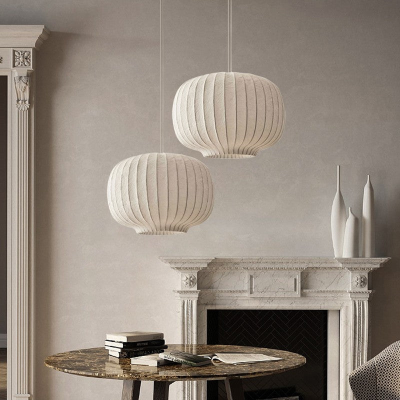 - Designed from a combination of sturdy metal and soft silk fabric, the Retro Lantern LED Pendant Light shines even further in timeless beauty. The flawless integration of these fine materials guarantees durability and elegance making sure that your space is lit with a hint of whimsy and glamour for the longest time.