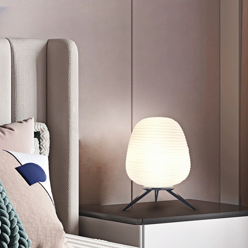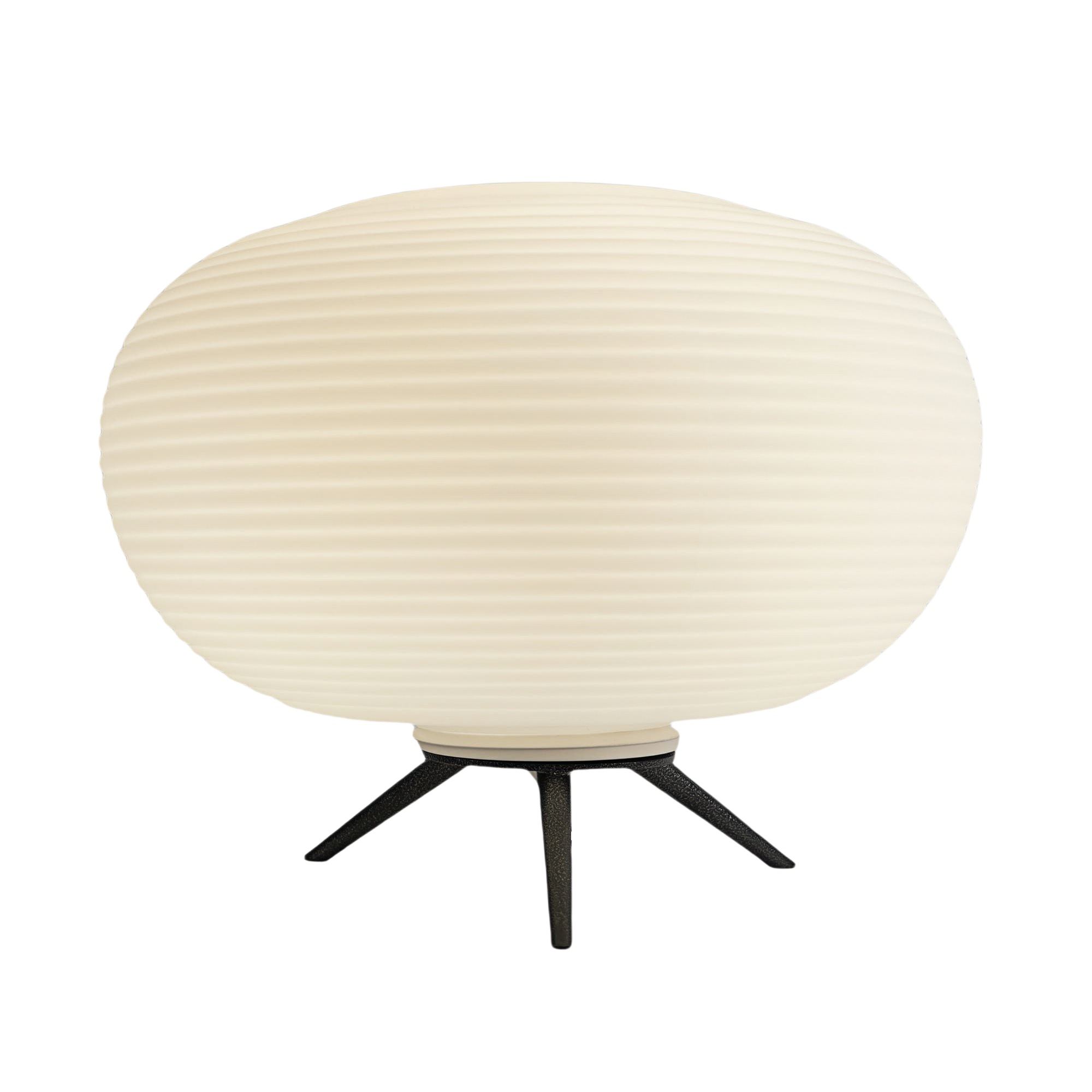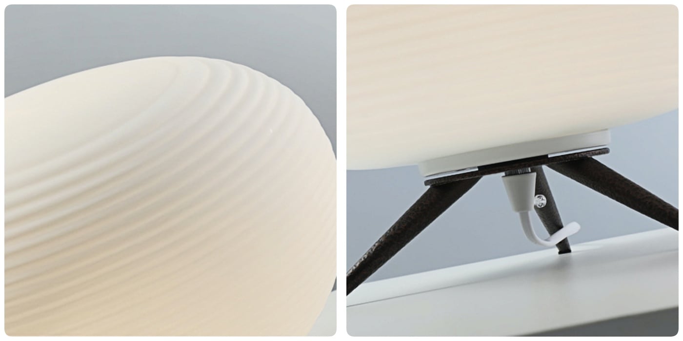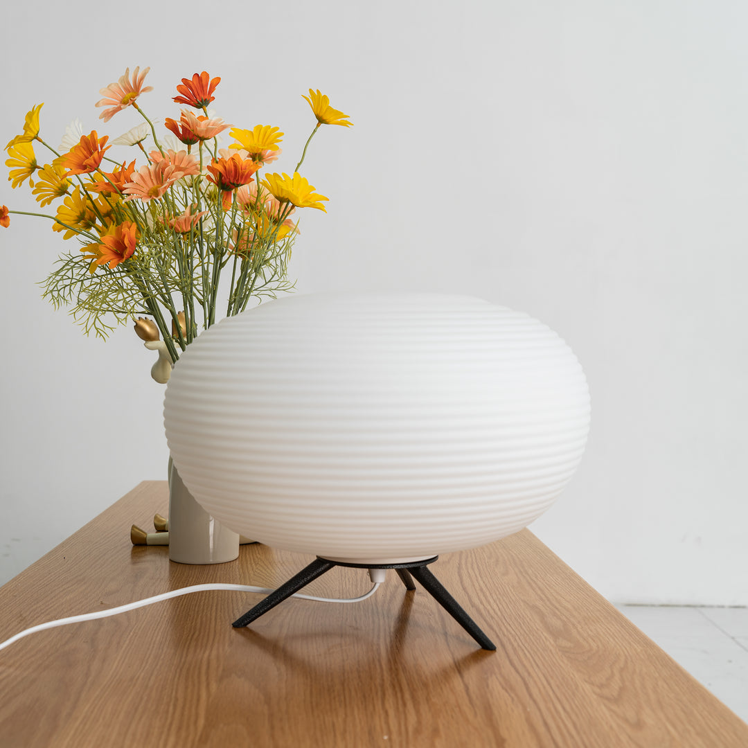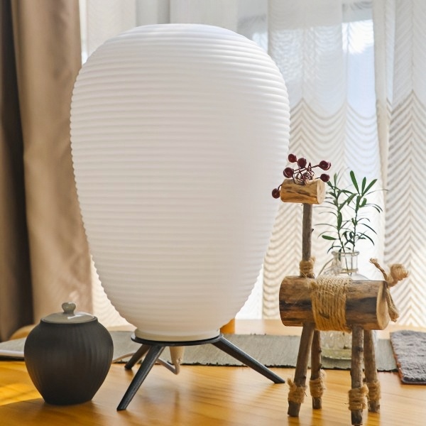 This Rituals 3 Modern Hand-blown Table lamp with thin engravings, showcasing skilled craftsmanship in complementary shapes. The table lamp emits a harmonious light through its exquisite mat opal glass.