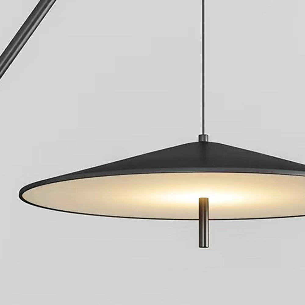 - The floor lamp is made of black metal. The lampshade has an outer layer of wrought iron in matte black and an inner layer in white for indirect light into the room.