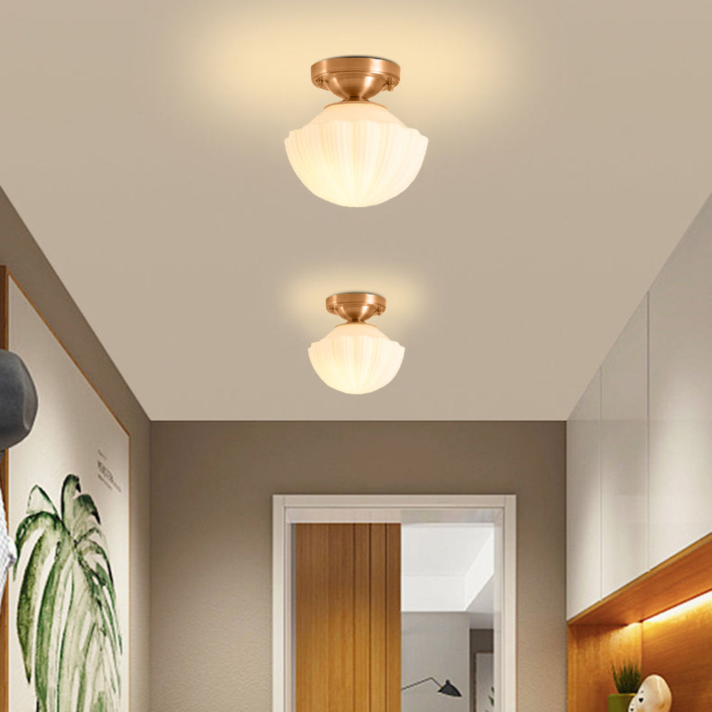 - Our LED flush mount ceiling light Featuring a polished brass lacquer base, this light is both sturdy and durable.A blend of metal and glass creates an irresistible harmony that is both beautiful and robust. Its sturdy base guarantees the longevity of this ceiling light, making it a valuable investment.