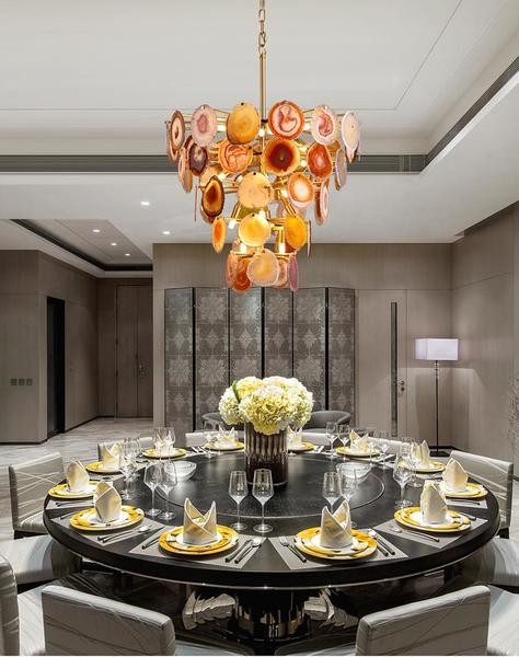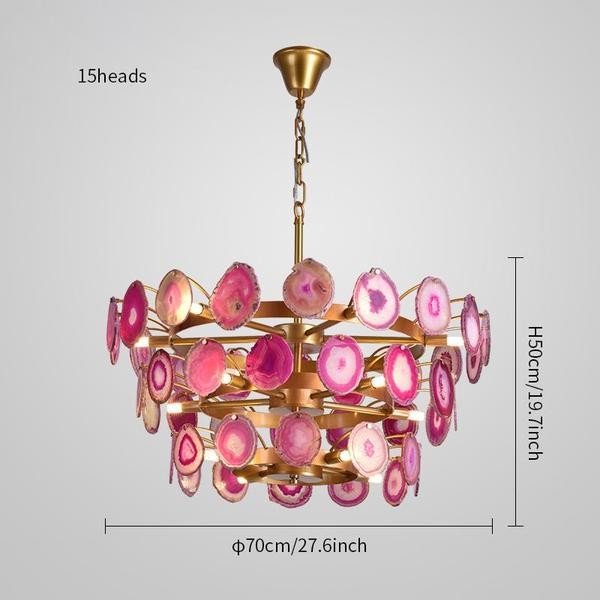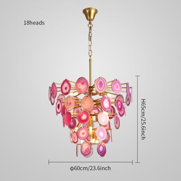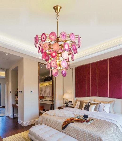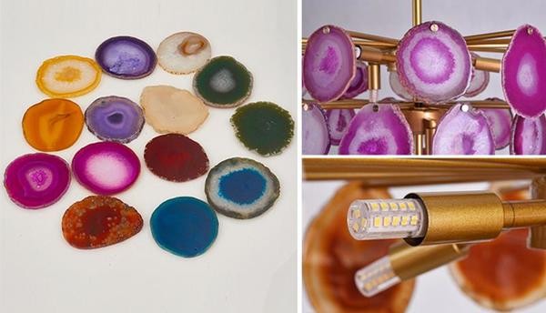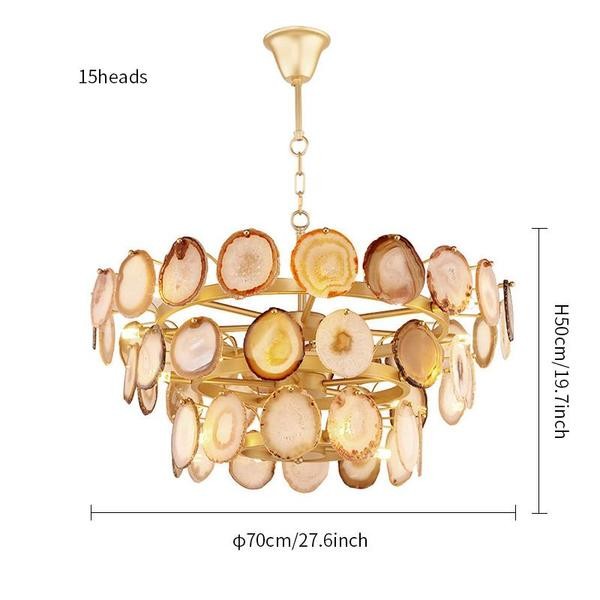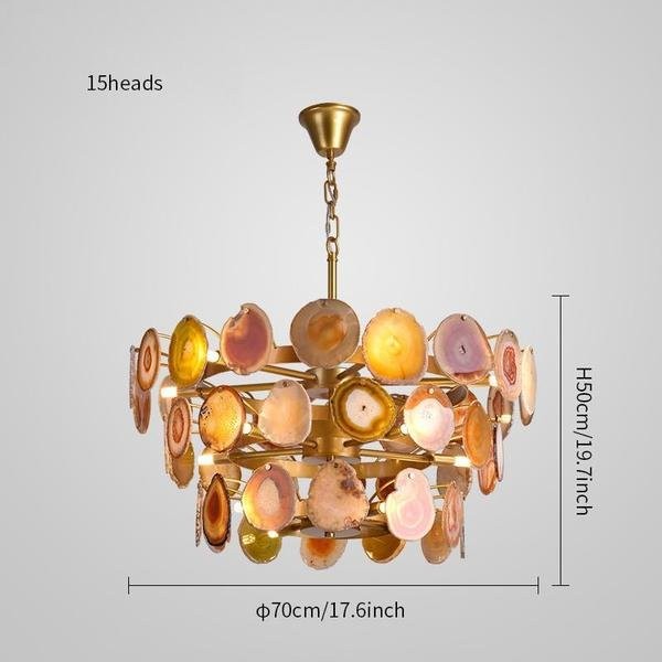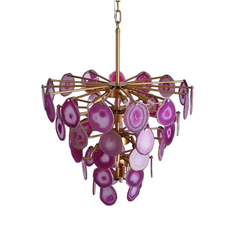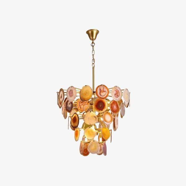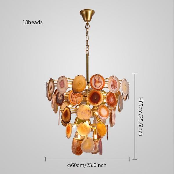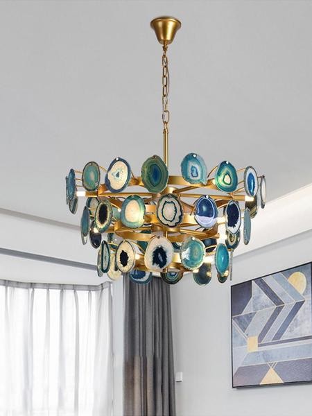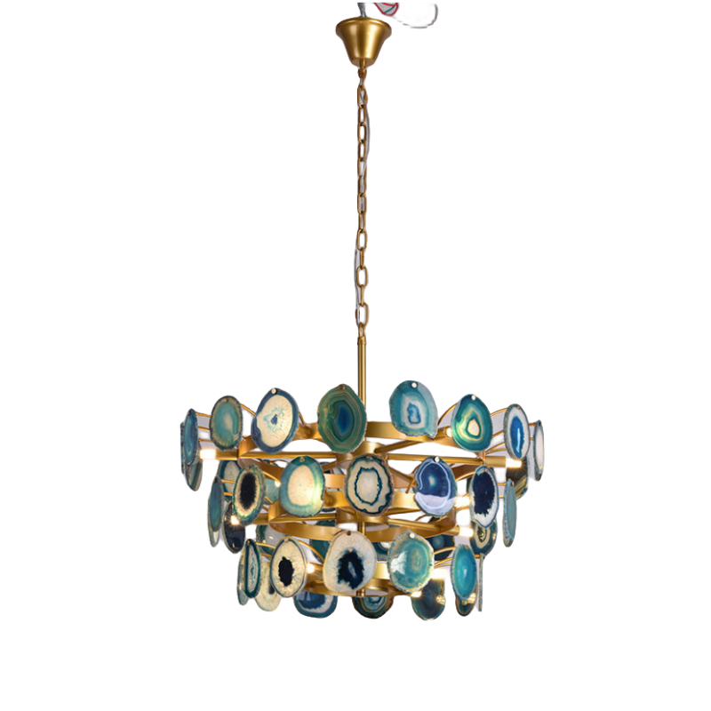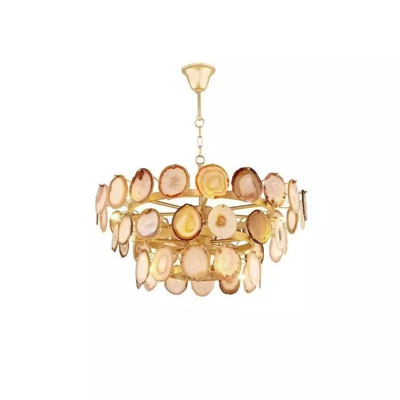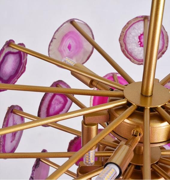 This is a luxurious agate chandelier. The natural agate rough is sliced, polished, perforated and made. The agate is brightly colored and has a smooth surface. It has strong light transmission and no glare. The lamp body is made of metal, welding, grinding, electroplating, etc. Note: The color and shape of the agate are not uniform. For example, the color of the agate is uneven. There are cracks, hollows, etc., which are natural phenomena of natural agate. Slice agate chandelier / Tower is very popular with its special appearance design. The light it emits is warm and comfortable. Ideal for living room and dining table. You can choose the right product according to your needs.- Please note: Your payment does not include customs duties, local taxes or any other import costs.