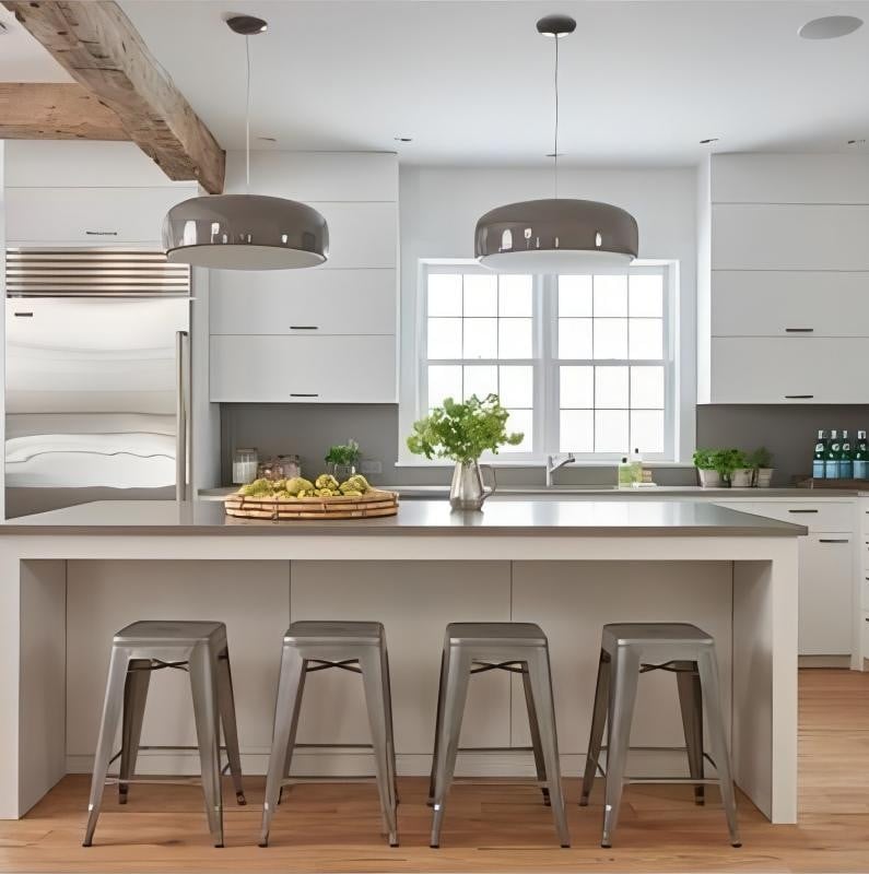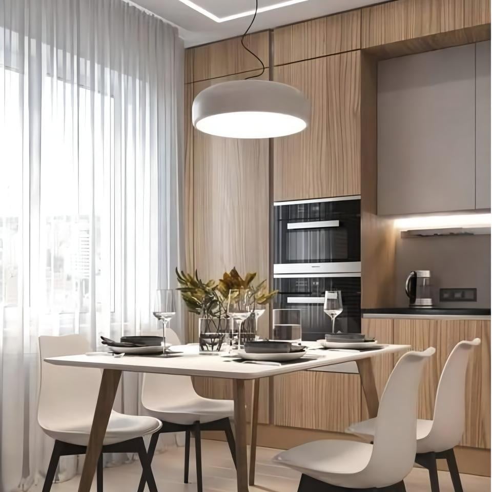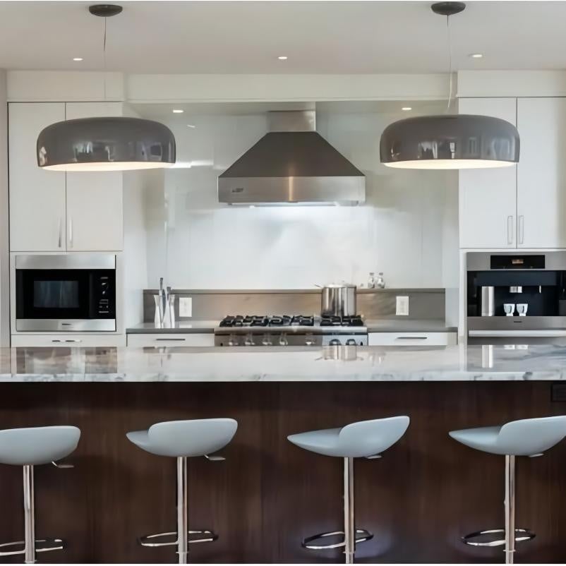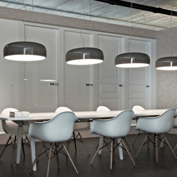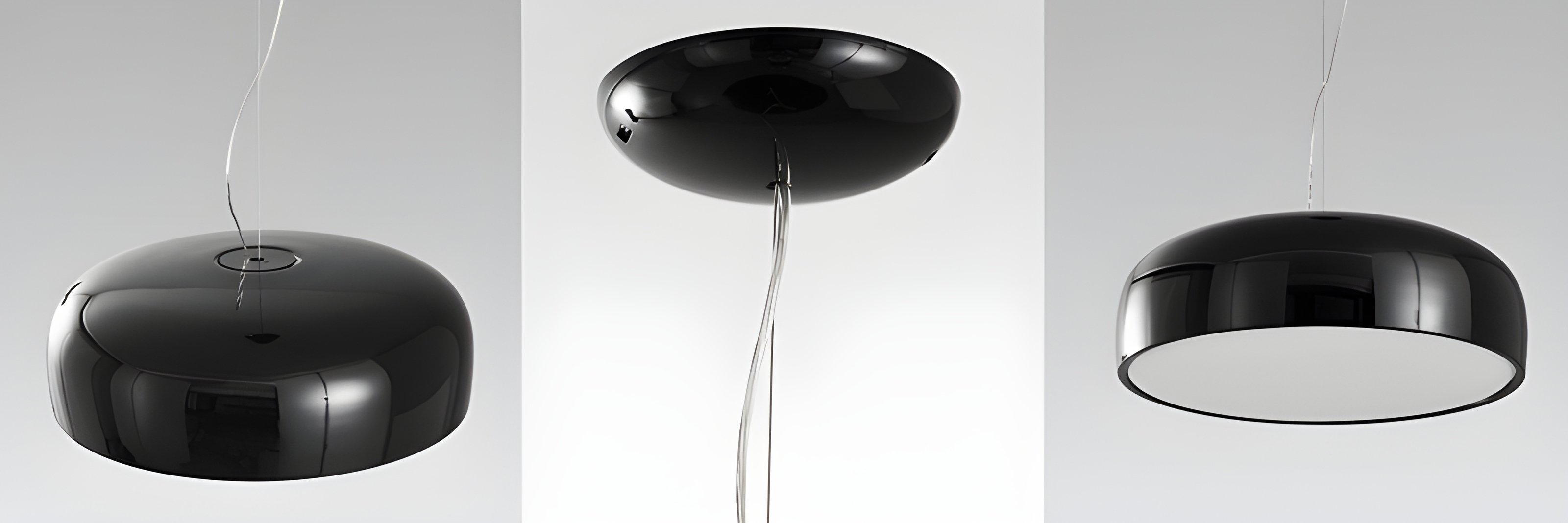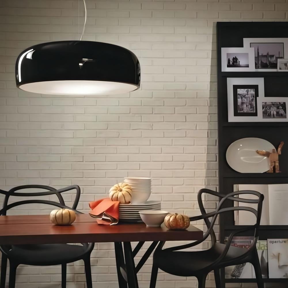 Injection-moulded opalescent methacrylate diffuser. Steel ceiling attachment with steel suspension cable. This modern and minimalist design is perfect for a cafe, or home kitchen. It's simplicity adds subtle hints of elegance and class to the culinary setting.