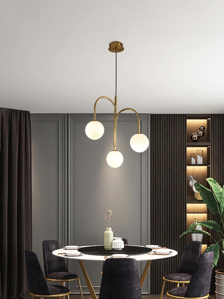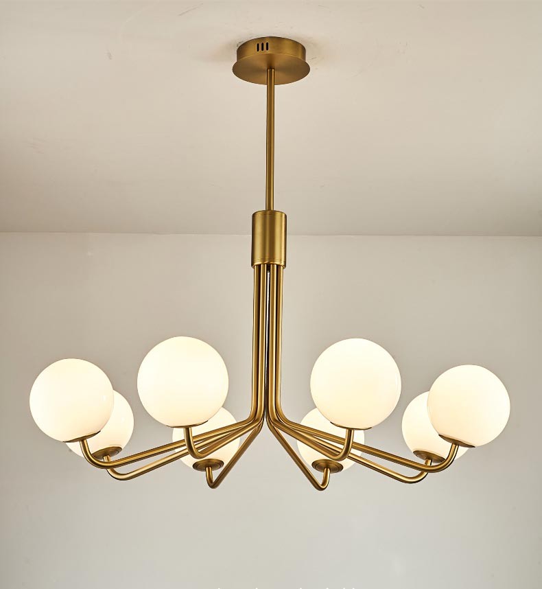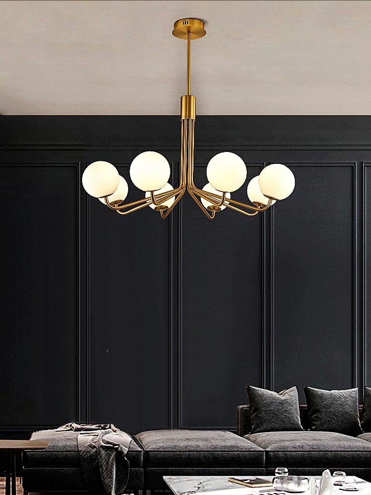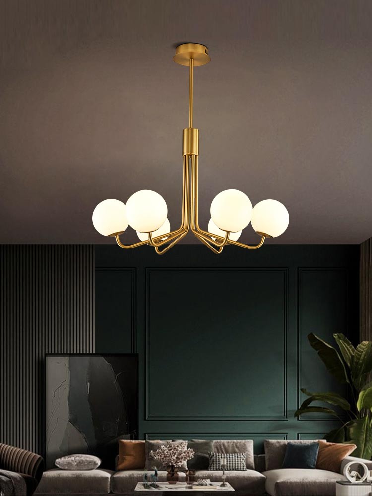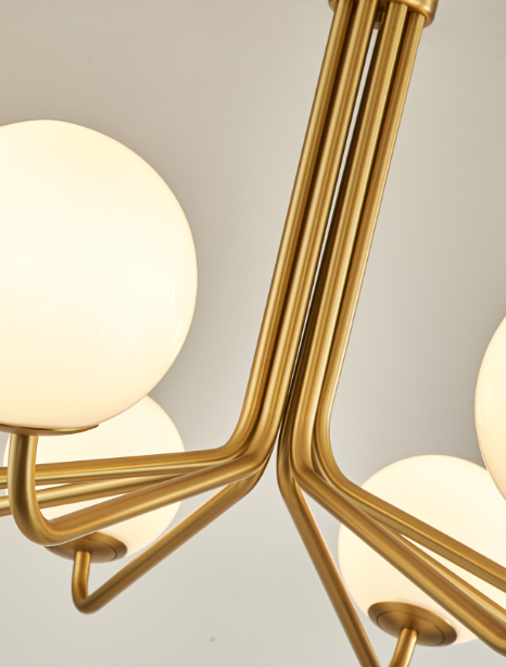 SUM Molecular Light is an innovative chandelier, which changes the typical shape of molecular light, making it a bit post-modern style. When you see this chandelier, it's hard to give an exact perception about it. Made of metal and glass, its shape is transformed accoding to the number of bulbs. The three-head is like fountain, the flowing water of which is changed into the golden lamp body and glass balls. The six or eight heads looks like the shape of roots on the ground, but its regular arrangement makes the chandelier more concise. It is ideal for minimalist indoor decorations.