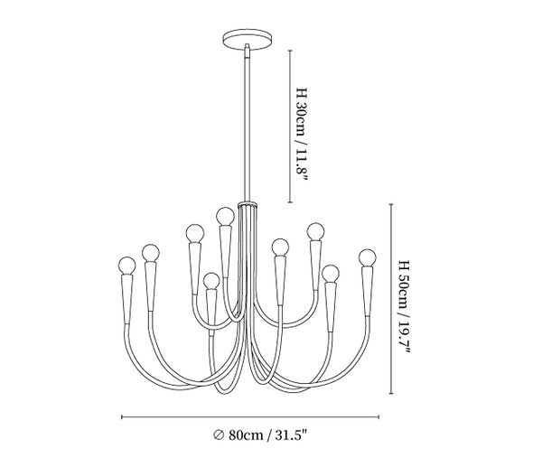3+6 heads Size: Dia 80cm x H 50cm / ∅ 31.5″ x H 19.7″