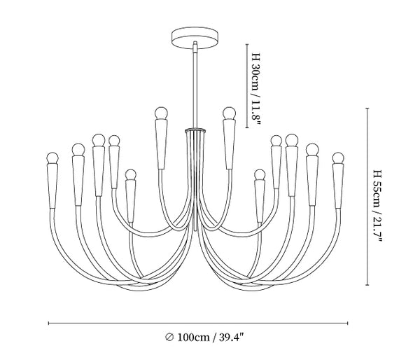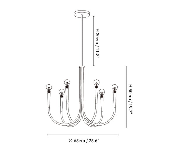 6 heads Size: Dia 65cm x H 50cm / ∅ 25.6″ x H 19.7″