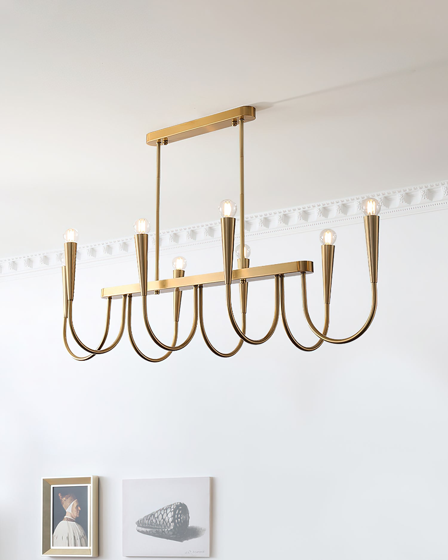 The Symphony Chandelier is more than just a lighting fixture. Its curved bracket design evokes the graceful curves of music, bringing harmony and brilliance to any room. Each lamp arm is carefully crafted for both illumination and artistic expression. Experience elegance and movement with this chandelier.