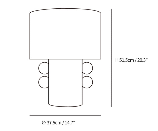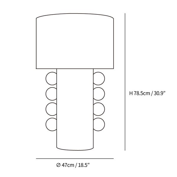 The Tiglia Table Lamp combines elements of Memphis design with a cylindrical base and repeated ball decorations. With a neutral black or white finish, this modern lamp adds a cohesive touch to bedside tables, bookshelves, and desks. Let your space be infused with style and function.