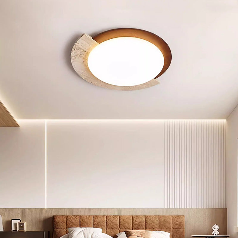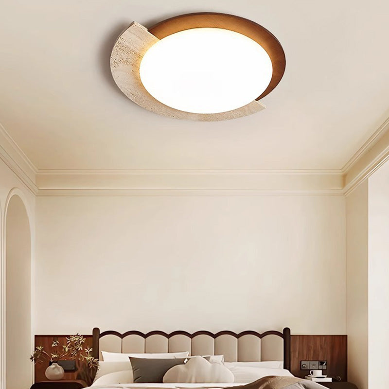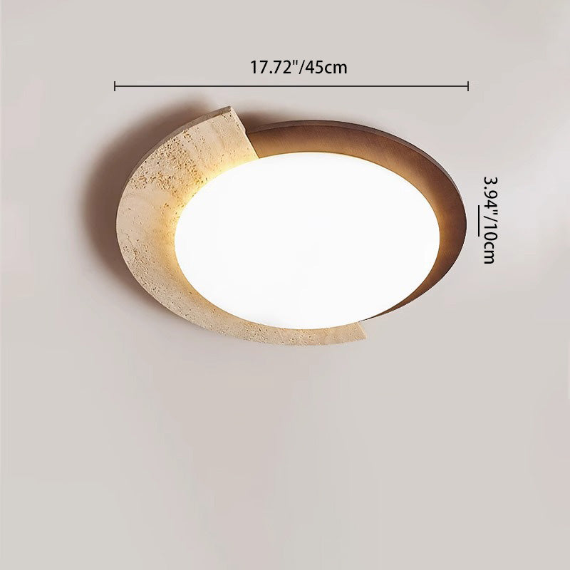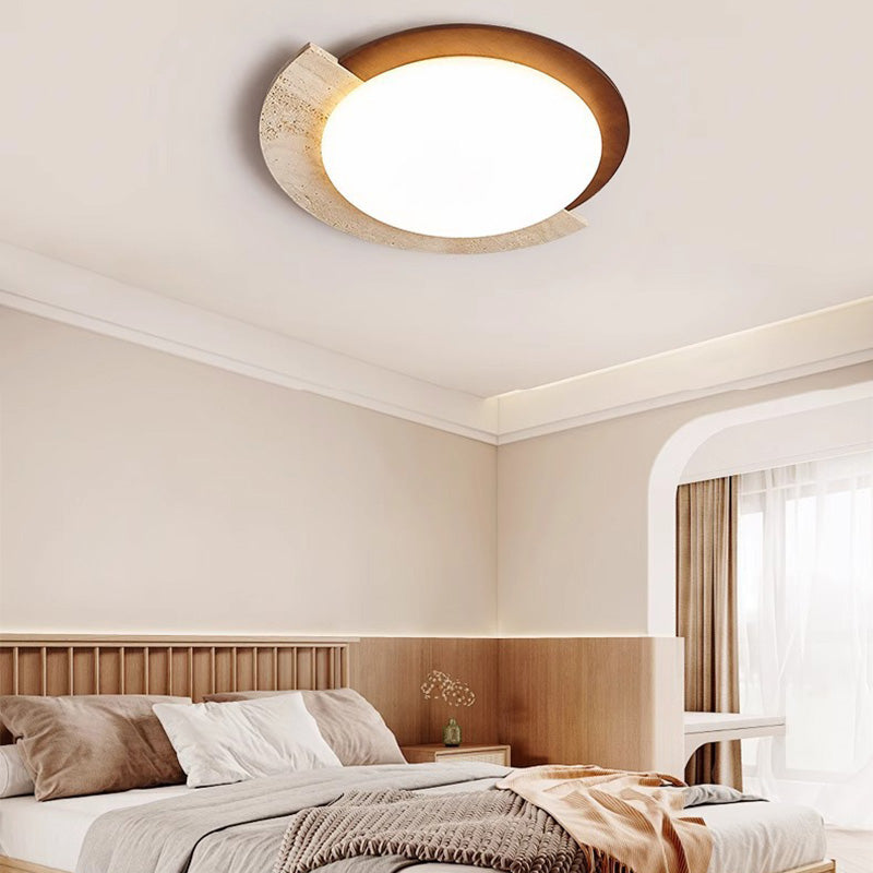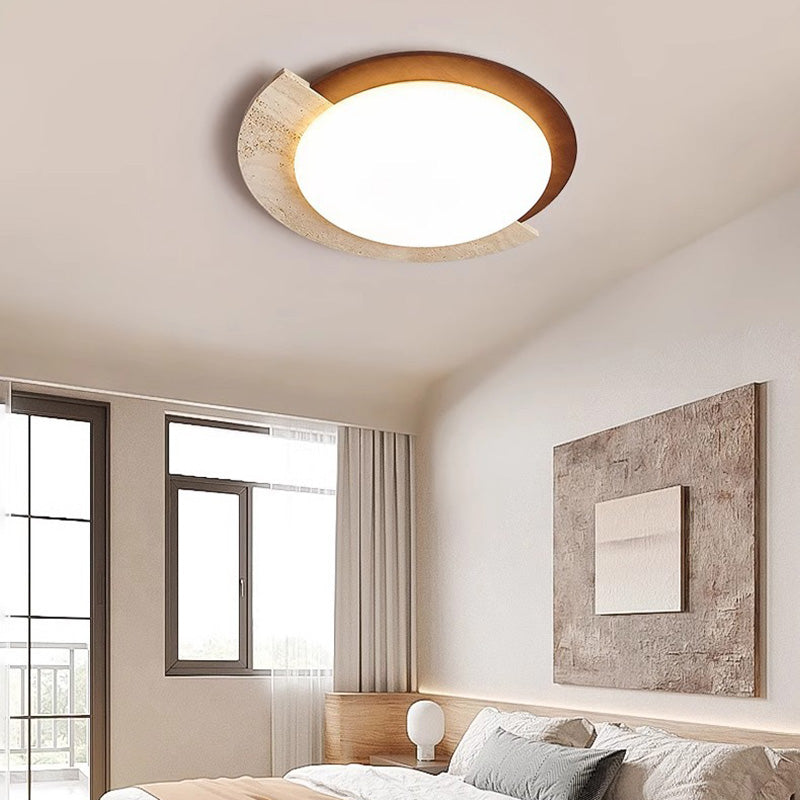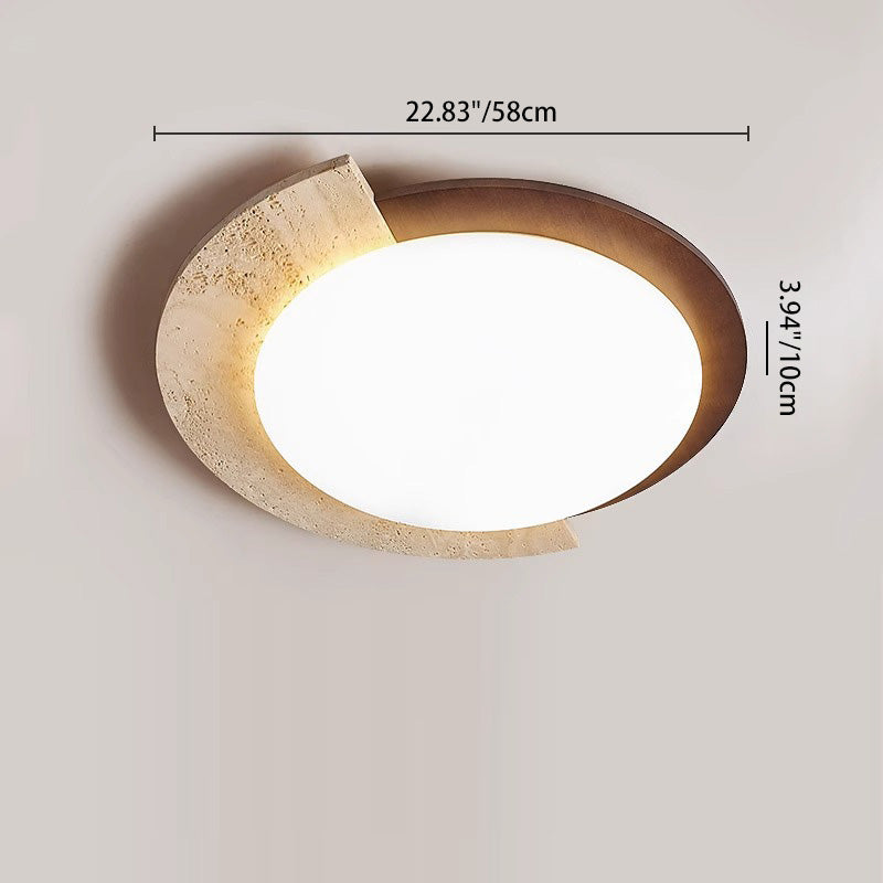 Traditional Vintage Round Beige Travertine Plastic LED Flush Mount Ceiling Light For Living Room