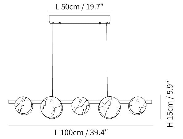 59″ Adjustable hanging height cable. Can be extended upon request.