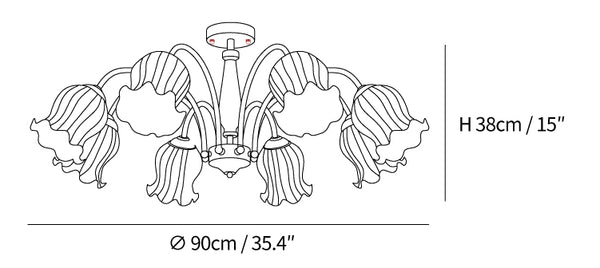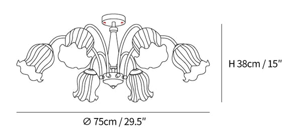 Make a statement in any room with the Trumpet Flower Chandelier. Handcrafted with exquisite glass petals, its elegant decor and lavish details bring a touch of sophistication to every space. Its classic silhouette and subtle lighting set the perfect tone for your home. With this timeless accessory, you can enjoy an atmosphere of class and refinement.