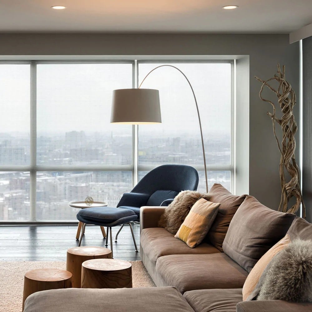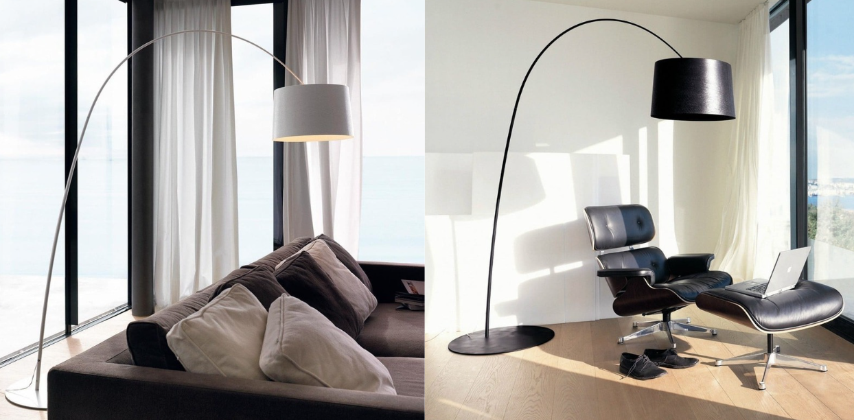 Inspired by fishing rods, the Twiggy Floor Lamp features a strong composite stem that arches gracefully to suspend large shades. With a height-adjustable design and counterweight system, it offers easy positioning. It provides ample light while adding a touch of luxury and modern art to living rooms, villas, exhibition halls, or hotels.