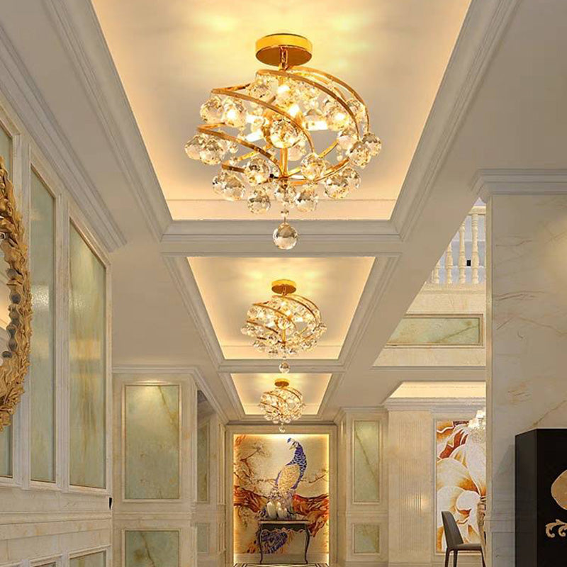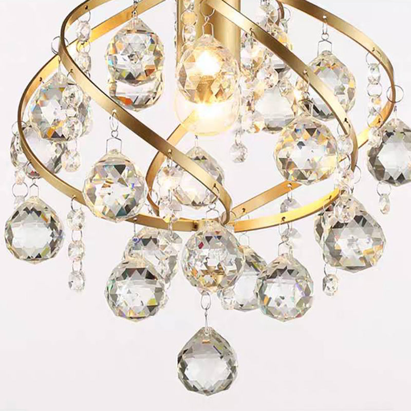 The brass-colored lampshade is hung with many ball-shaped crystal pendants, which look elegant and noble.