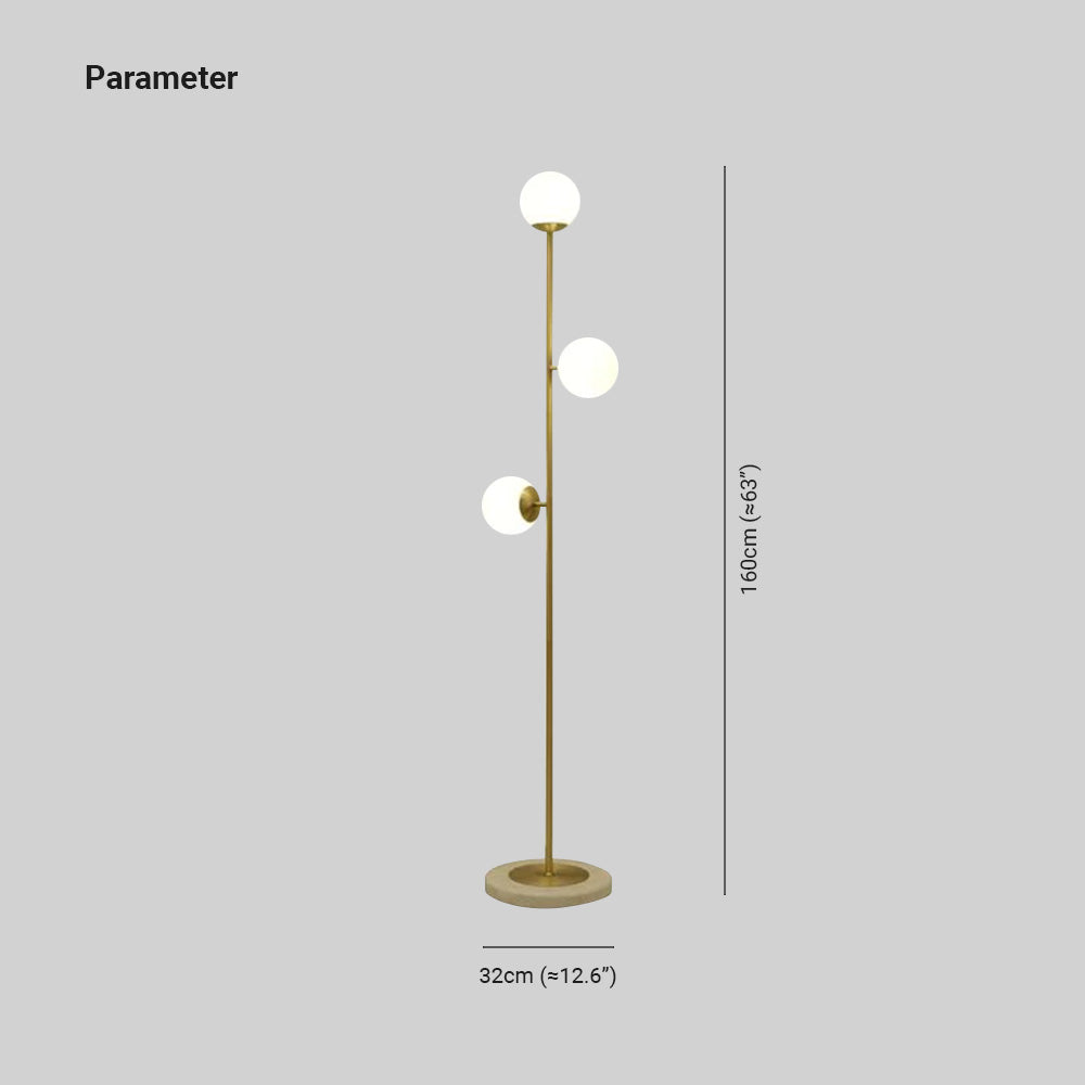 - The floor lamp's overall form is a combination of three heads of globe shade. A unique and personalized one illuminates and decorates the house at the same time.