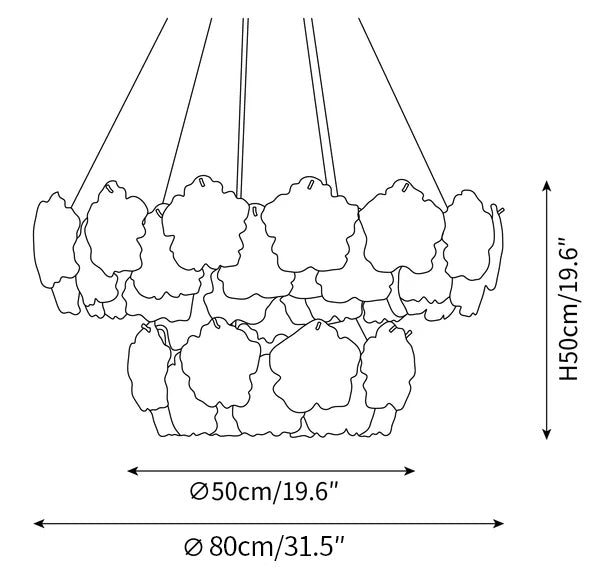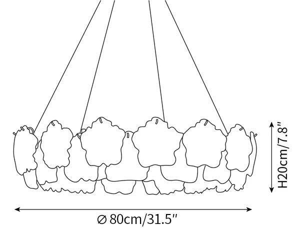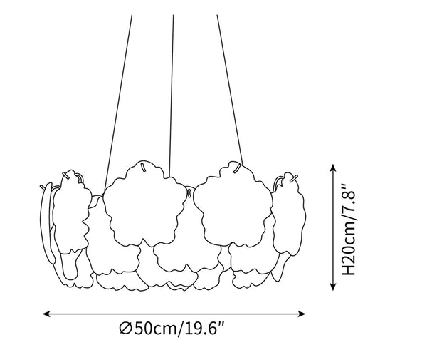 Size: Dia 50cm x H 20cm / ∅ 19.6″ x H 7.8″ (E14*8 Bulb)