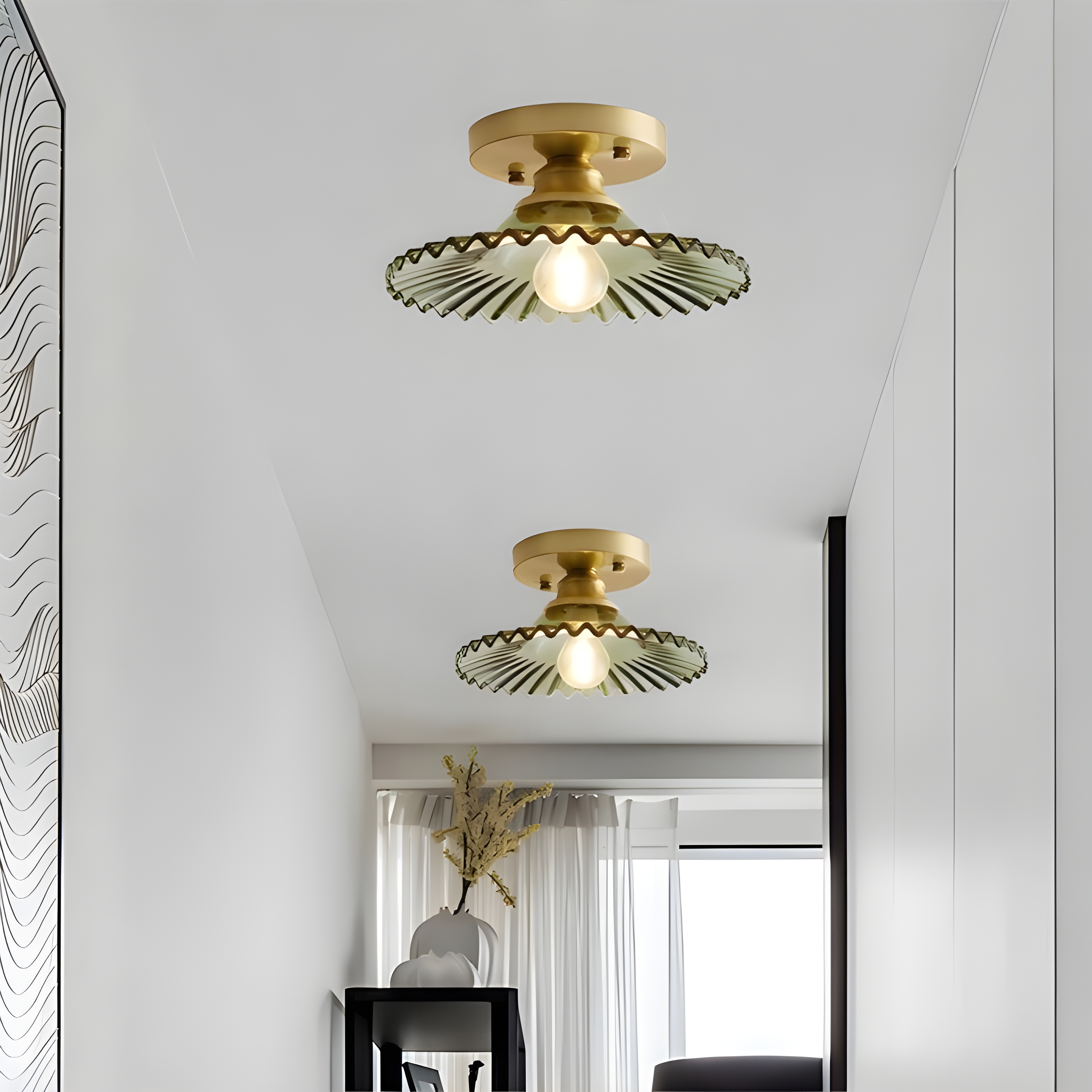 With its delicate ribbed petal design and ornate clear glass construction, the glass ribbed petal ceiling lamp exudes timeless glamour. This vintage clear glass flower lamp is perfect for adding a touch of whimsy to a modern interior or enhancing the vintage charm of a traditional setting.