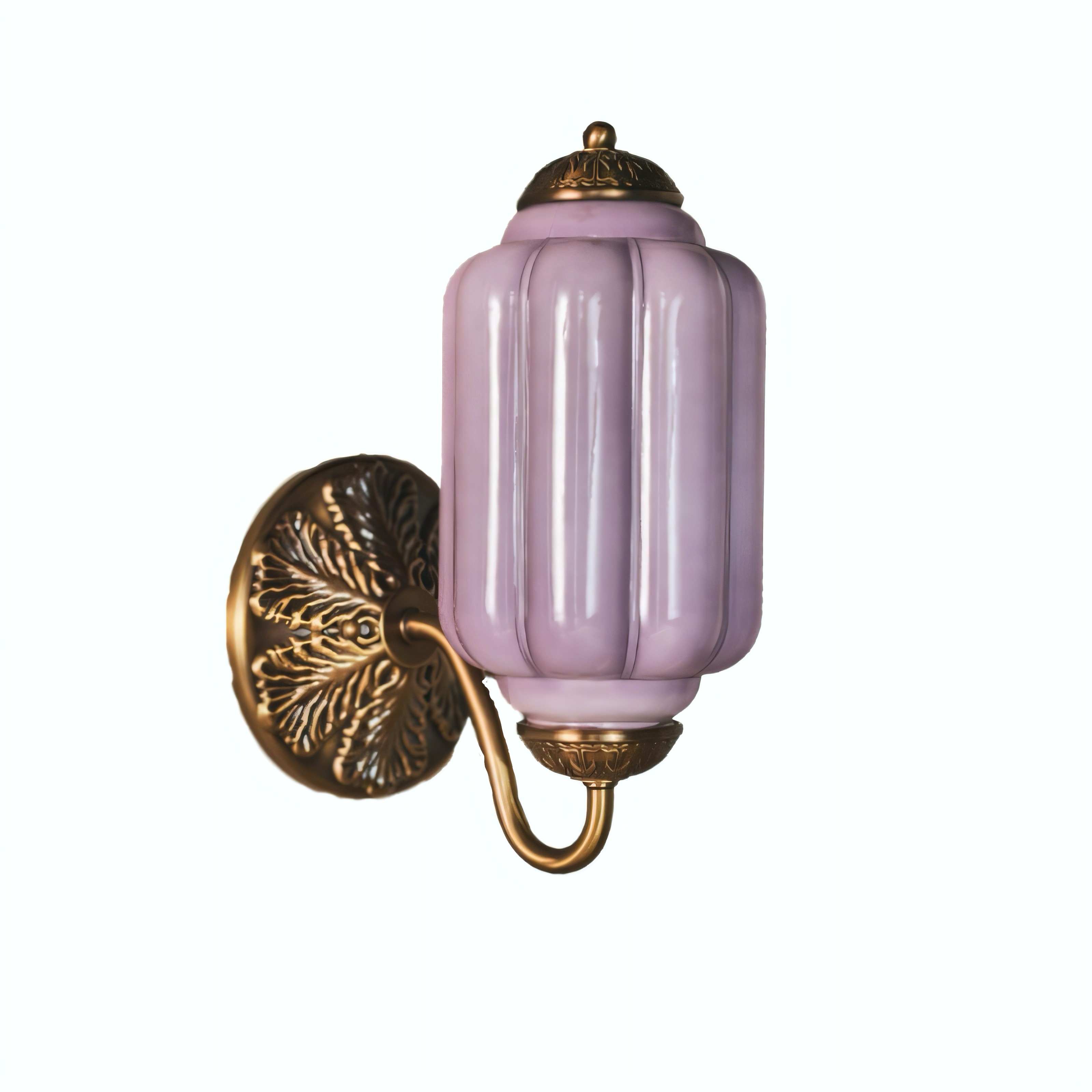 The main body of the Eloise Glass Sconce Vintage Wall Lamp is carefully crafted from glass, presenting a deep and elegant color. The glass is engraved with vertical stripe patterns, which appear more delicate under the illumination of light, adding a sense of hierarchy to the medieval style wall light.