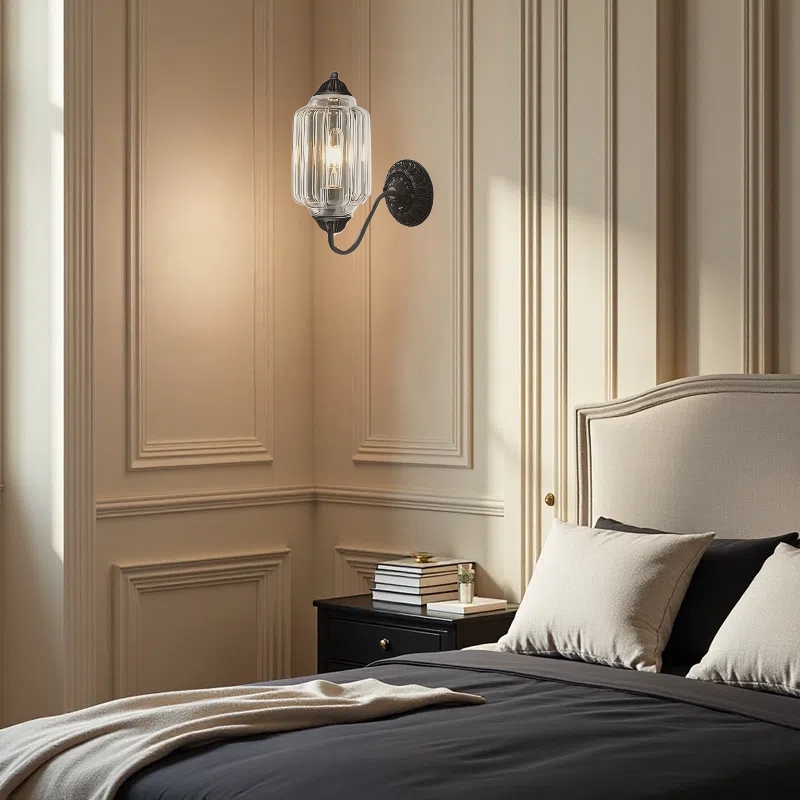 The Eloise Glass Sconce exudes vintage grandeur with its fluted glass silhouette and sculptural metalwork. A refined statement piece, it adds a layer of quiet opulence to hallways, reading nooks, or vanity corners. Ideal for interiors seeking a whisper of old-world charm with a touch of timeless romance.