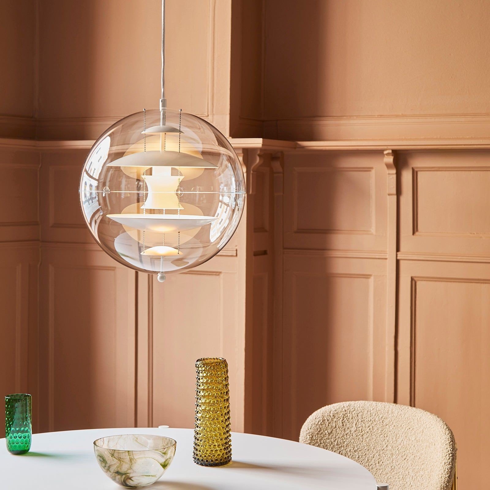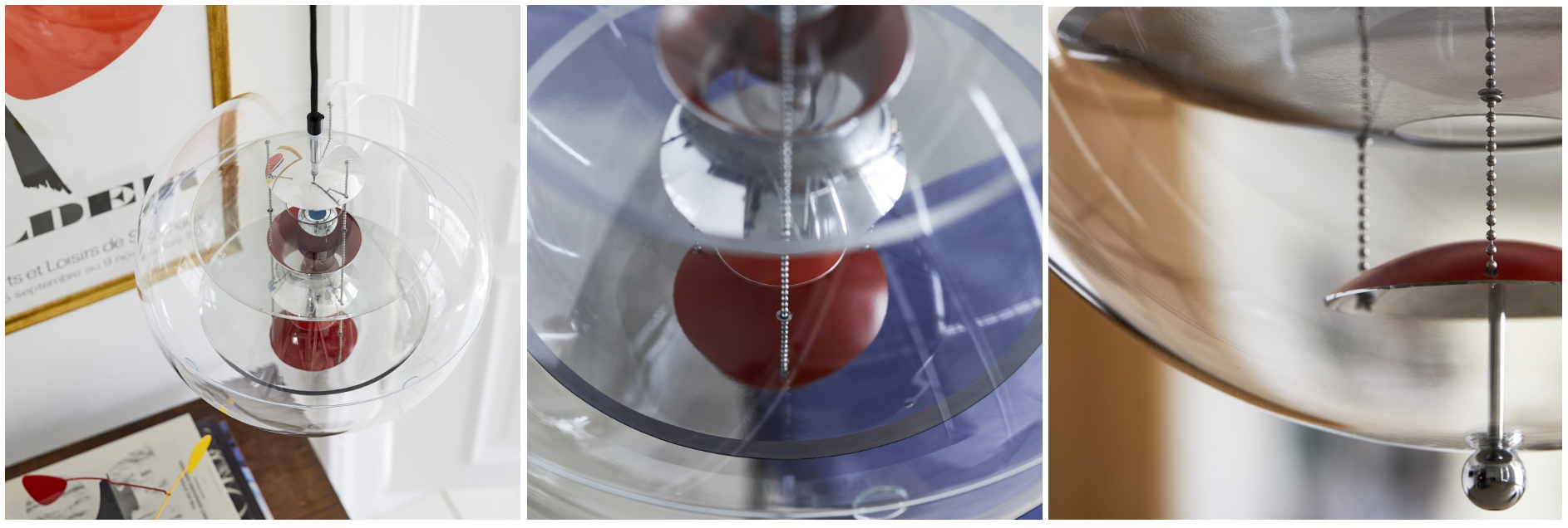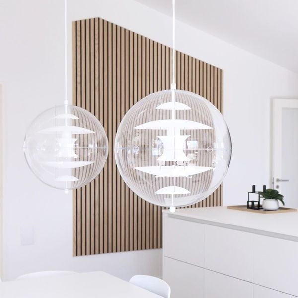 This VP Globe Pendant attracts all eyes with its clear acrylic glass shade and the technical and cool-looking five aluminium reflectors. This Globe exudes an unparalleled futuristic vibe. Controllability, transparency and colourfulness are the main features of the product.