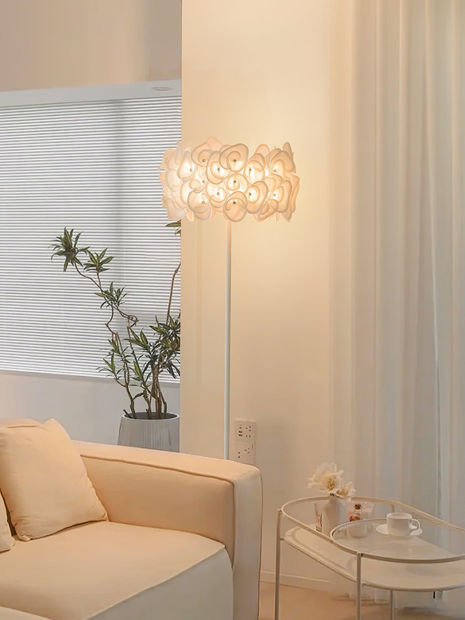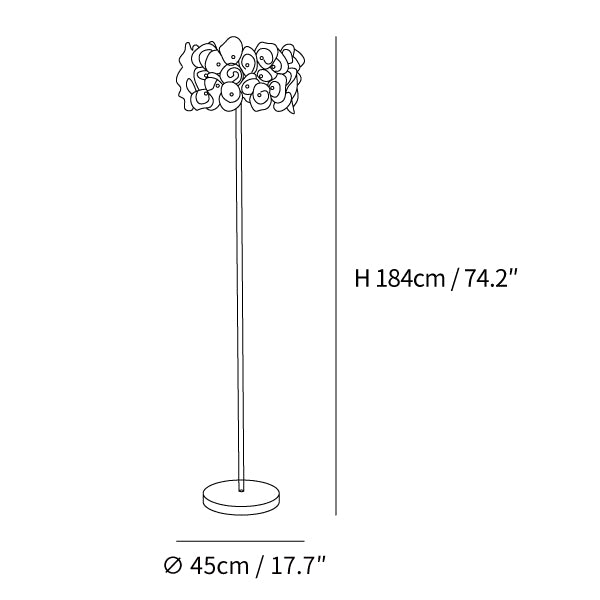 The White Hydrangea Floor Lamp is an eye-catching piece of art, with its smooth lines, intricate silhouettes, and stunning looks. Its cloud-like design is made up of individual petals that are hand-bent and cold-cut, giving it an exciting, lively feel. With many shapes combined, it creates a beautiful light diffusion to draw attention, making it a conversation starter.