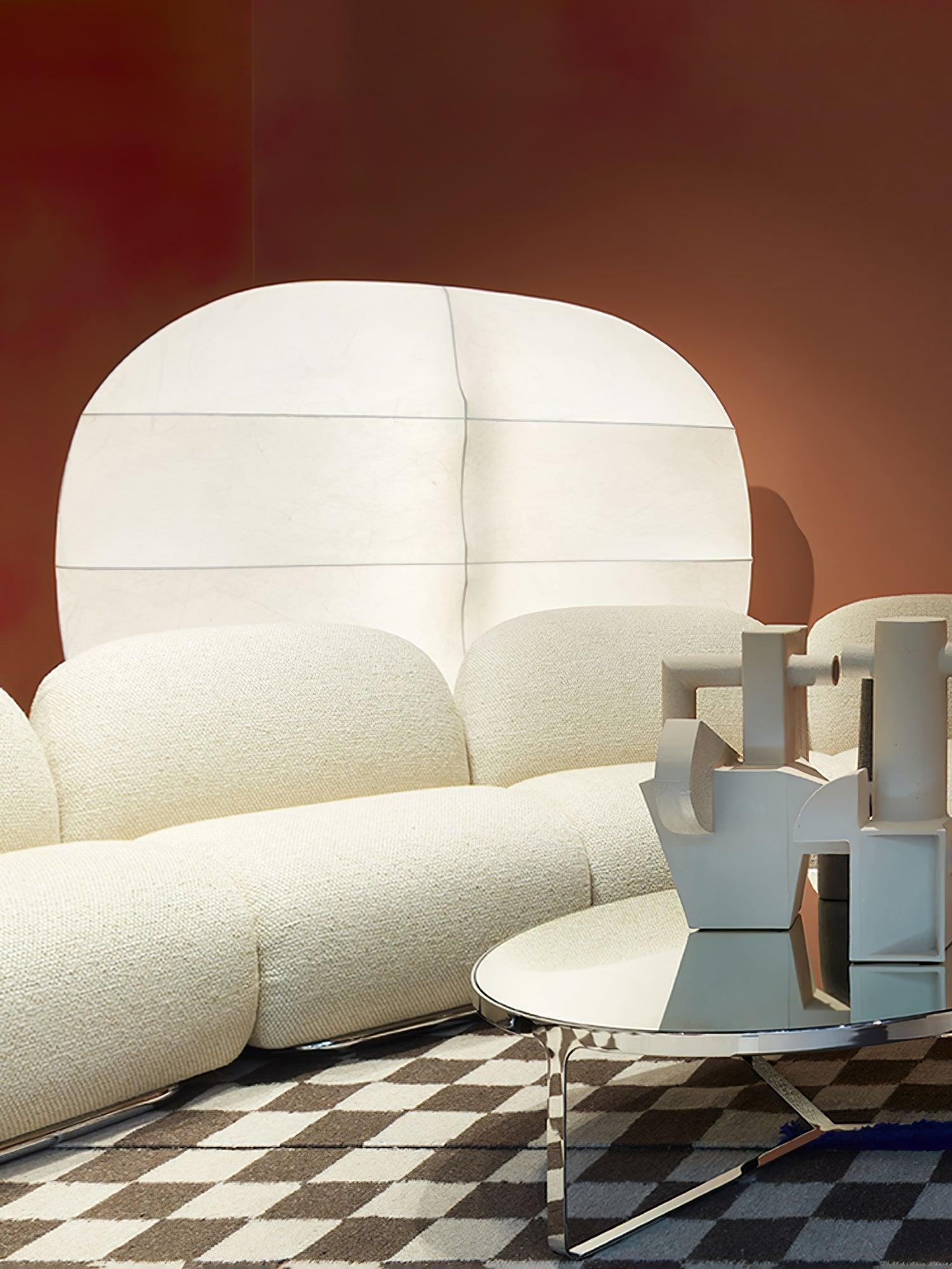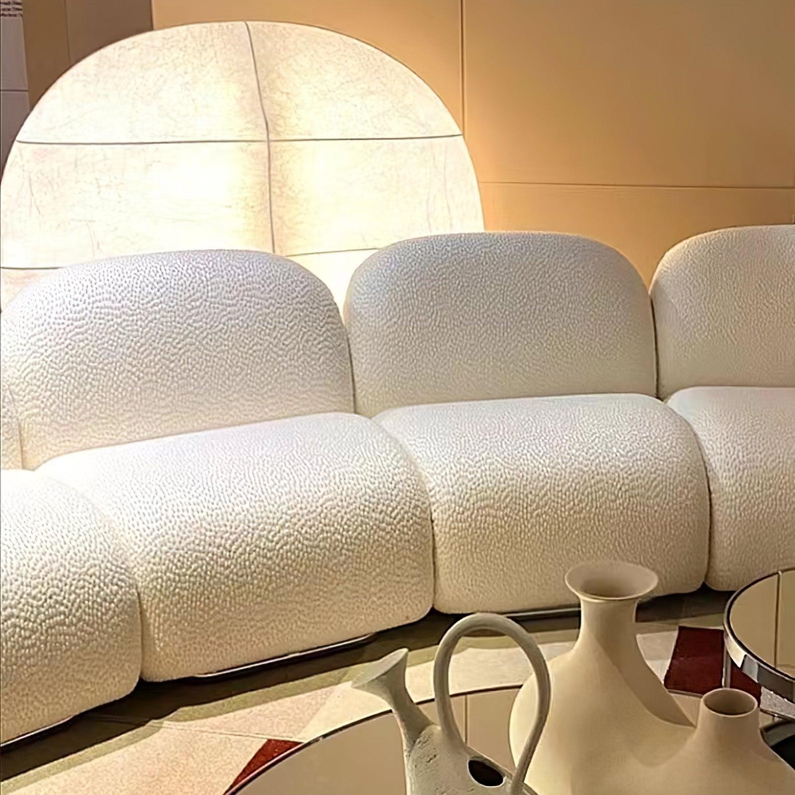 The Windsurfing Floor Lamp is an expertly crafted sculpture to transform your space. The warm, diffused light delicately partitions the area while seamlessly unifying it. Two sizes of luminous screens, constructed from cocoon-like resin fibers, create soft, enveloping shapes akin to clouds. A manually sprayed metal structure completes the look.