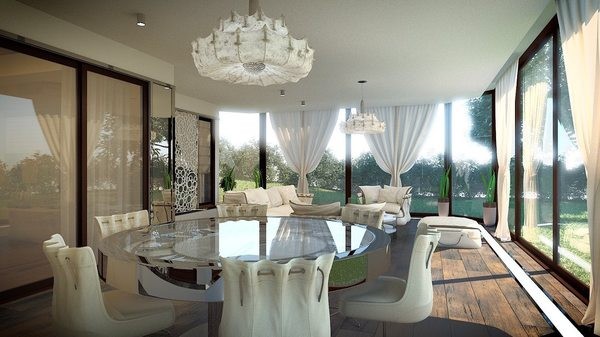 The Zeppelin Suspension lamp providing diffused lighting. White powder-coated internal steel structure sprayed with a unique "cocoon" resin to create the diffuser which is then protected by a transparent sprayed on finish. Transparent polymethylmethacrylate (PMMA) "candles". Faceted crystal globe located at the lower center for a sparkle effect.